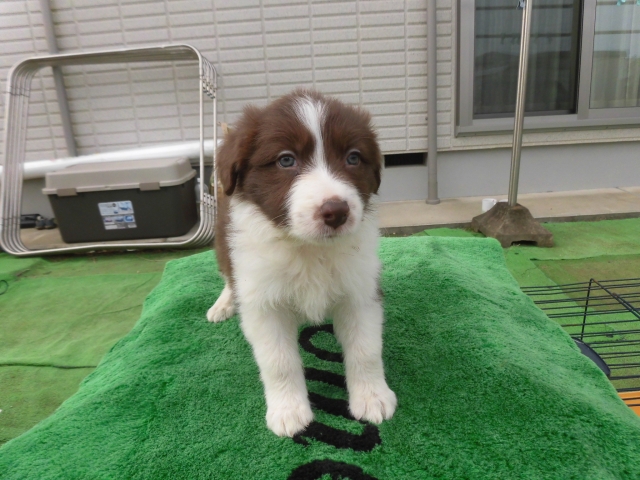 | コメント | 父親/ブラック&ホワイト・叔父、叔母インターチャンピオン 母親/チョコ&ホワイト・訓練競技会系統 両親共に穏やかな性格です。 DNA遺伝子検査クリアー 家庭犬・競技会に如何でしょうか。 |