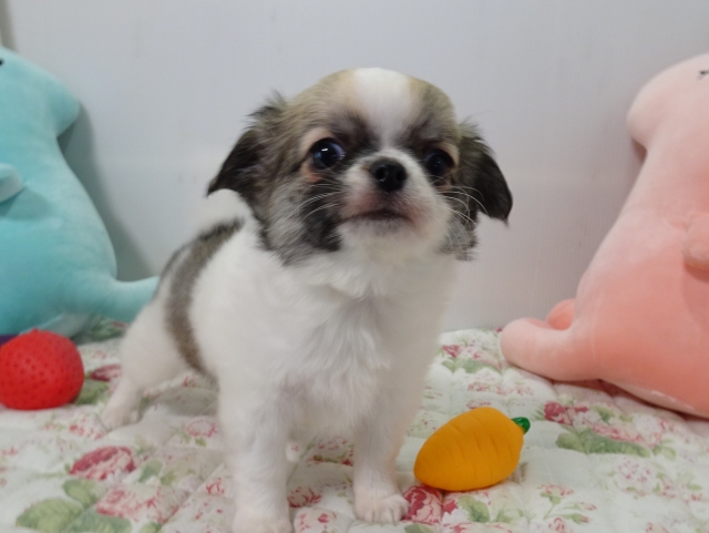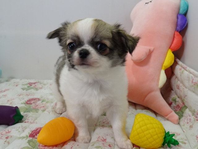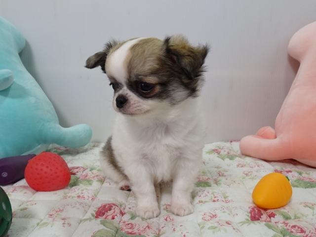 チワワ(ロング) パーティ(ホワイト&レッド) ♂(男の子) 栃木県【 ブリーダーズ 】