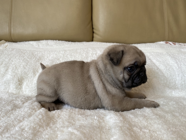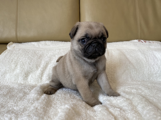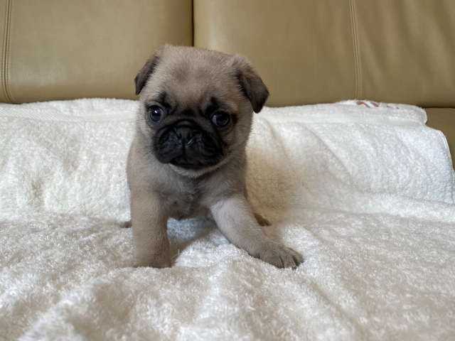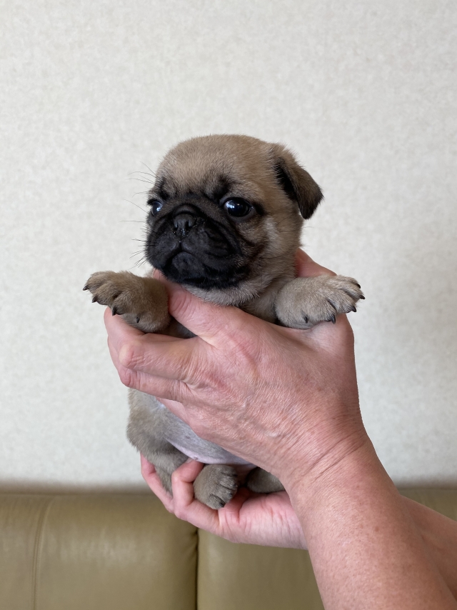 パグの飼育歴は30年以上になります。今年親の代から買っていた 黒パグを亡くしてから家を埋め尽くしているパググッズを見るたびに いつか新しい仔を迎えたいと思うようになりました。 北関東でブリーダーさんを探しているうちに木村様を知り、見学、購入の運びとなりました。 このたび性格も大変おおらかな素晴らしい仔犬をお譲りいただき大変感謝しております。 (茨城県 男性)