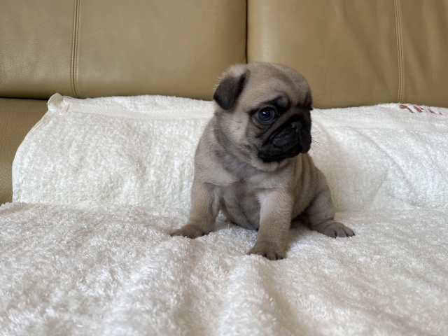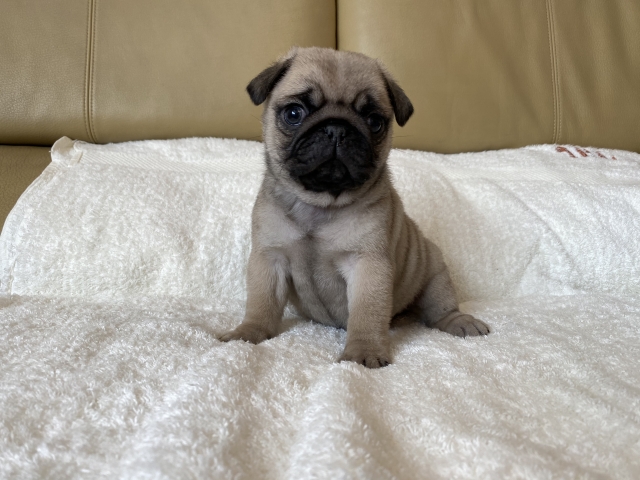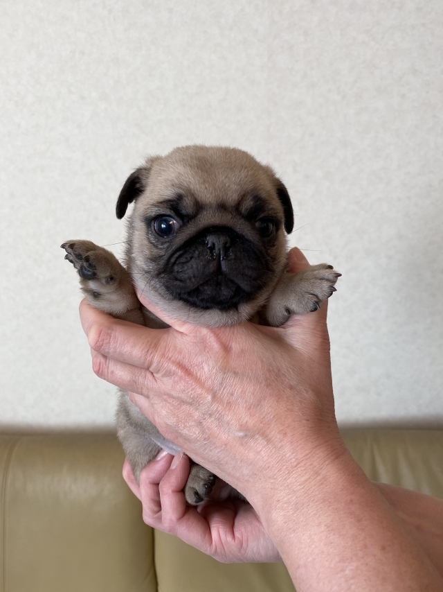パグの飼育歴は30年以上になります。今年親の代から買っていた 黒パグを亡くしてから家を埋め尽くしているパググッズを見るたびに いつか新しい仔を迎えたいと思うようになりました。 北関東でブリーダーさんを探しているうちに木村様を知り、見学、購入の運びとなりました。 このたび性格も大変おおらかな素晴らしい仔犬をお譲りいただき大変感謝しております。 (茨城県 男性)