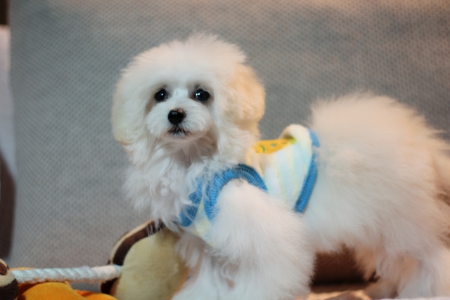 | コメント | 母親 クリーム 父親 ホワイト 毛量たっぷり♪ お鼻やアイラインの色素もばっちり濃く、 ちぃちゃくて可愛い男の子です♡ 成犬時予想サイズはティーカップ~タイニーくらいかと思います。 当店は離乳時期までしっかりと母犬と一緒に過ごさせてます。 離乳後は、他の子犬たちと過ごして触れ合わせて、 社会性も身に付けさせています! わんこも人も大好き♡ 可愛さは顔だけでなく、性格もラブリーな子達に育てています♪ お引き渡しはワクチン接種後の生後60日前後以降となります。 お問い合わせお待ちしております。 (ご見学は完全予約制となっております。事前にご予約お願い致します) 【お問い合わせ及びご見学においての注意事項】 ○お問い合わせいただく前に必ずご家族様と話し合いを済ませられてからお問い合わせください。 (何度もやり取りした後に、ご家族様の許可が得れなかったとのことでキャンセルされる場合がございます。やり取りの間こちらは作業が中断され、その分犬達のお世話を満足にしてあげられませんので、ご理解お願い致します) ○ご見学の際はなるべく少人数でお願いします。 ○お迎えご検討いただいてる子犬以外は触っていただくことはできません。 ○特に事故防止のため、お子様には子犬との触れ合いをご遠慮願います。 ○他のブリーダーさんのところへ寄ってからのご見学はご遠慮ください。 子犬達の安全・健康のため、何卒ご理解よろしくお願いいたします。 撮影日:4月15日 |