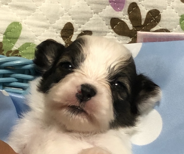パピヨン ホワイト&ブラウン ♂(男の子) 岡山県【 ブリーダーズ 】
