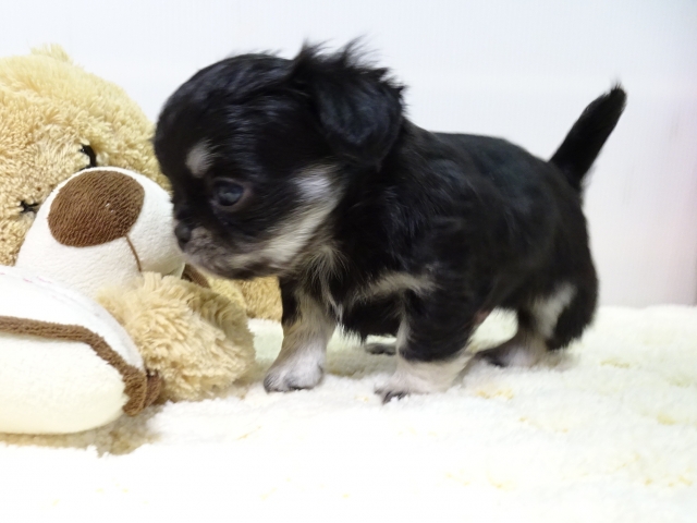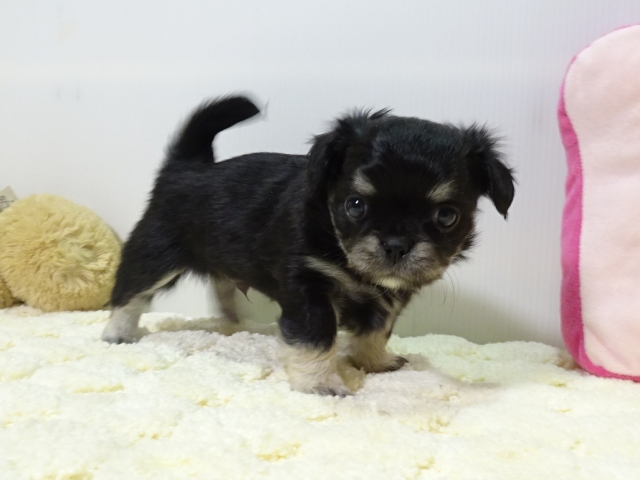 | コメント | ペキチワのママとチワワのパパから生まれた子です。 チワワ寄りのペキチワくんです。 上向きのタンが凛々しい短足鼻ぺちゃの可愛い男の子です。 どんな子に成長するか、ミックス犬ならではのお楽しみです♪ 毎日ママや兄弟たちと楽しくじゃれ合いながら社会性を身に付けるお勉強をしています。 お迎えまでにはトイレトレーニングも頑張ります。 実物はお写真よりもずっと可愛いです! 是非ご見学にお越しください。 お引渡しは2月末以降になります。 《お願い事》 まずは、子犬を飼う事をご家族で十分お話合いをされ、子犬をお迎えできる環境が整ってからのお問い合わせをお願いいたします。 お問い合わせ時に希望の子犬が決まっておらず、生まれている子犬全部を見たい等のご希望には添えかねます。 こまめな写真更新を心がけておりますが、 個別に新たな写真を希望される場合、子犬の向きや角度など細かなリクエストは撮影に時間がかかり子犬のストレスになりますのでご遠慮ください。 写真撮影は全くの素人ですのでどうぞご理解ください。 |