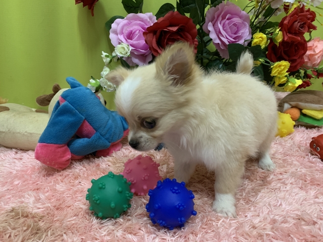 チワワ(ロング) レッド&ホワイト(パーティー) ♀(女の子) 奈良県【 ブリーダーズ 】
