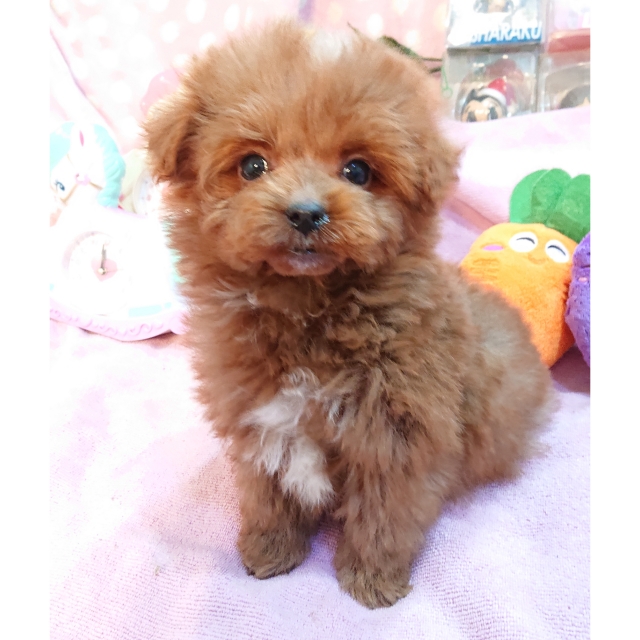 | コメント | 父・・ヨーキー 母・・プードル たれ目が可愛い小ぶりな男の子です 毛質はプードルよりですが巻きは弱めで ふわふわしています 頭と顎と胸に白い毛が有って可愛いポイントです お鼻は詰まって居て短めで幼いお顔立ちが 可愛い子です 優しい性格で甘えん坊な男の子です 体型もコロコロしていて全体に丸っこい体型で 走る姿がとても可愛いです 今の所下の齒がほんの少し出て居ますが 生え変わりの時に変わってくる場合も有ります 生活上何の問題も有りません 大人になって3Kg前後の可愛いサイズの仕上がり予想です 健康診断、1回目のワクチン済みです 生涯家族の一員として可愛がって下さる方を希望致します 女の子のミックスちゃんも産まれています☺️ |