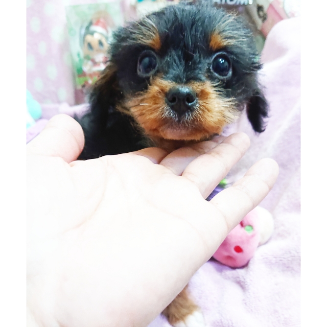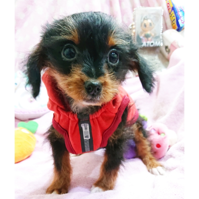 | コメント | お父さん・・ヨーキー お母さん・・プードル まん丸でくりくりなお目目が可愛い男の子です 毛質はストレートに近くて柔らかくふわりとしています 抜け毛もほとんど気になりません 甘えん坊な性格で人が大好き 自分でお膝に乗ってきたり付いて歩いてみたり とっても可愛い性格です 大人になって3kg以内の可愛いサイズの 仕上がり予想です 健康診断、1回目のワクチン済みです 生涯家族の一員として可愛がって頂ける方を希望致します |