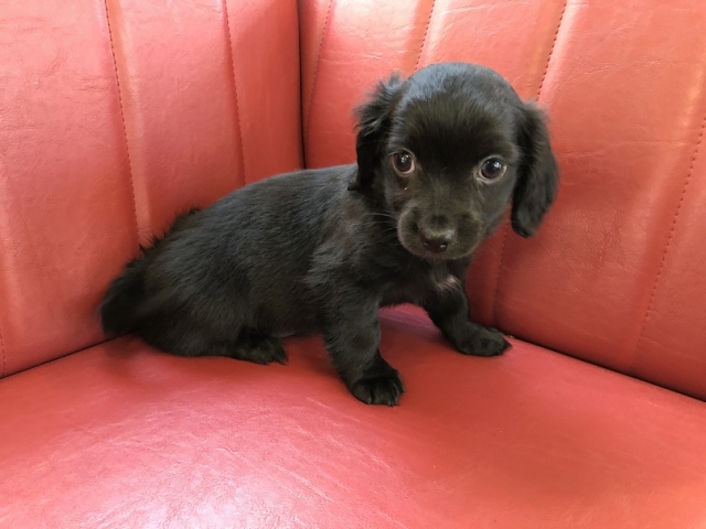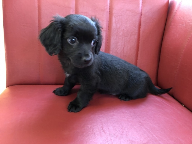 | コメント | ミニチュアダックスフンド(ママ)とチワワ(パパ)から誕生したチワックス。 ほとんど真っ黒ですがほんの少し白が入っています。 3月26日現在の体重は1,4㎏です。 ワクチン1回分(5500円)は別途お願い致します。 見学場所は京都府舞鶴市です。 |