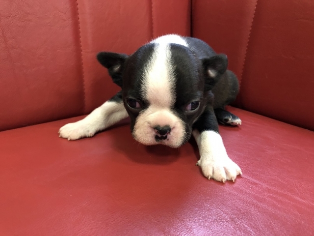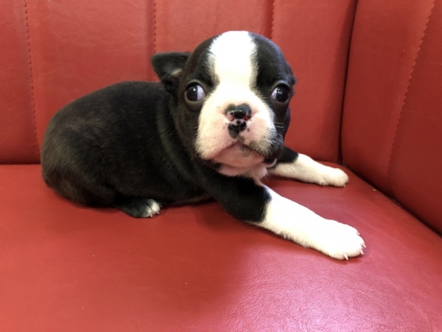 | コメント | 愛嬌たっぷりのボストン・テリア 楽しい家族になりますよ! お引渡しできるのは3月中旬以降ですが、ご予約は承ります。 生後60日までは無料でお預かりさせて頂きますが、それ以上お預かりの場合は 1日 1000円 追加料金を頂いております。 ワクチン1回分(5500円)は別途お願い致します。 |