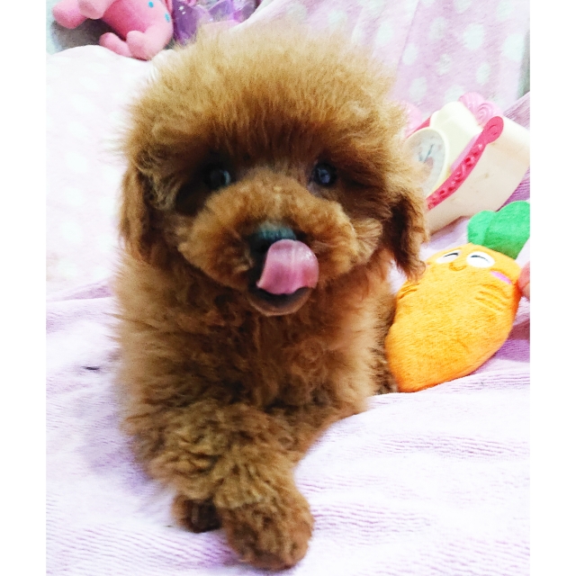 | コメント | お父さん・・ディズニー君 お母さん・・りんりんちゃん 両親レッドです まん丸なお目目が可愛い男の子です 巻きは緩めでふわふわしています 遊び好きでとても元気の良い明るい子です 甘えん坊で人懐っこい性格です 今の所下の齒が少し出て居ますが生え代わりの時に 変わってくる場合も有ります 生活上何の問題も有りません シャンプー、ドライヤー良い子です 大人になって3kg~3,5kg以内の仕上がり予想です 健康診断、1回目のワクチン済みです 生涯家族の一員として可愛がって下さる方を希望致します |