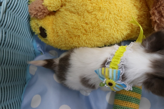 この度は可愛いカニンヘンダックスの女の子を譲っていただきありがとうございます。濱田さんのところからのお迎えは2頭目で、可愛さは初めの子でわかりすぎるほどわかっていたので絶対可愛くなること間違いなしで決めさせていただきました。 どんなことでも相談してくださいねと言う心強い言葉や、可愛い動画を送っていただいたりと本当によくしていただけました。 ワンちゃんは初日からアイコンタクトばっちり、よく食べ、よく寝て、元気いっぱいです。 家にきて1週間、先住犬と遊びながら元気に成長中です。 またよろしくお願いします。(大阪府 女性)