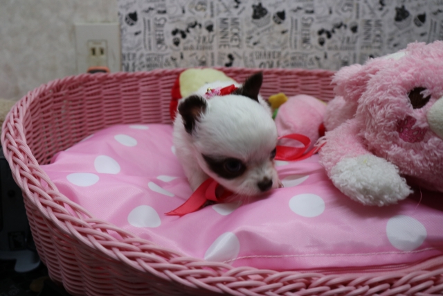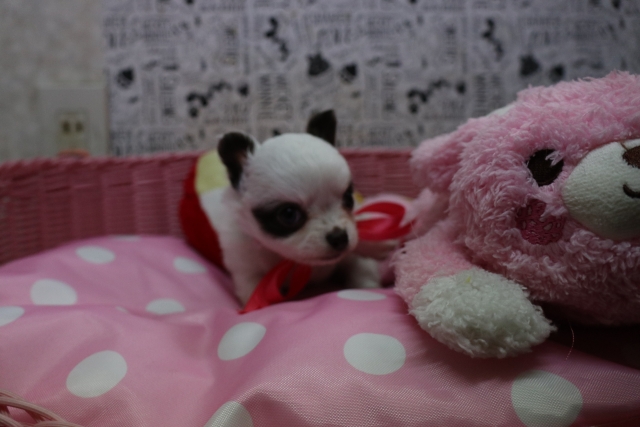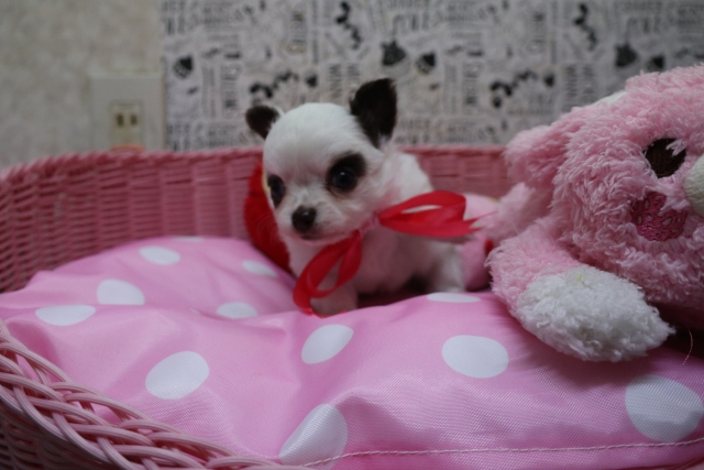 | コメント | お父さんチョコクリームの『シン』君。2.5㌔のPRAクリアーのイケメン君! お母さんチョコタン&ホワイトの『チロル』ちゃん。1.8㌔のお母さん。 小さな小さなチワワちゃんになりますよ! 皆様からのご質問、お問い合わせ、ご見学お待ちしています! 大阪市 濱田 |