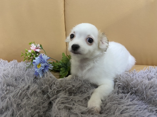 | コメント | 綺麗な可愛い子です。 パパはチワワ でママはマルチーズの子でおとなしいです。 元気で優しい性格で癒されます。 フードを良く食べて健康です。 人懐こい賢い子です。 |