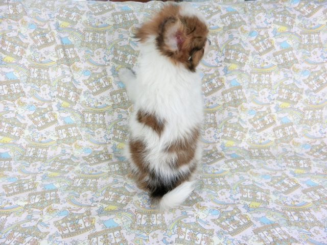 名古屋からお迎えしました。チワワちゃんを亡くし途方に暮れていた中ミックスの子迎えました。帰りの新幹線でもお利口でした。お迎えまで1ヵ月ありましたがしっかりと配慮の行き届いた対応して頂きました。預かっているあいだに社会性を学んだみたいで初日から一通り出来ました。歴史のあるブリーダ-ならではの安心です。待っているあいだも写真や動画送って下さり名前で読んで下さり初日から自分の名前わかっているかのようです。とても健康で生きがよく愛嬌最大限です。ミックスなのでどのように育つかわからないところが育てがいがあります。ご飯ももりもり食べてうんちもしっかりしています。こんな可愛く健康な仔犬をお譲り下さり感謝致します。こんなに丁寧で細部まで至れり尽くせりですみません。安心して共に暮らしていけます。この度は本当にありがとうございました。(愛知県 男性)