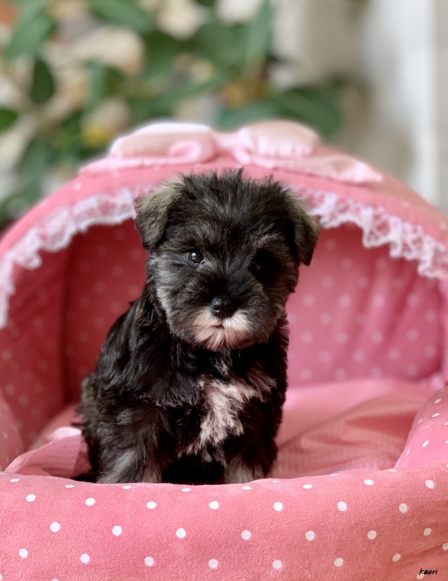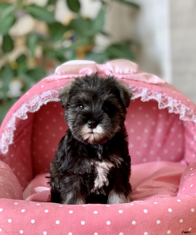 シュナウザーを主力にされているブリーダーさんだと認識しており、ボスちゃんはどうかなあと正直不安でしたがとても可愛く健康的なボスちゃんをいただきました。 掲載されていた写真より実物は想像以上に可愛くて即決し見学させていただいたその日に連れて帰りました。連絡をして、翌日行きますぅって勝手な申し出にも関わらず敏速かつ親切に対応して頂き大満足です。契約に対しても一つ一つ丁寧に説明してくださり、わかりやすかったです。この度は可愛いボスちゃんとのご縁をいただき、本当に有り難うございました。 (大阪府 女性)