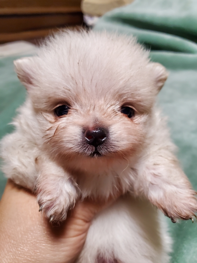 初めてブリーダーさんからの子犬を譲って頂いたのですが 凄く丁寧な説明に加え返事も早かったので スムーズにポメちゃんをお迎えすることができました。 飛行機の時間上、こちらの都合で早い時間に犬舎にお伺いすることになったのですが 快く対応して頂き凄く助かりました。 ポメちゃんのお顔も可愛く、サイズも小振りで、性格も人懐っこく 我が家に到着初日から家族のアイドルです。 素晴らしい出会いとポメちゃんとのご縁に大変感謝しております。 この度は誠にありがとうございました。 定期的に成長報告のご連絡、致します(^-^)(沖縄県 女性)