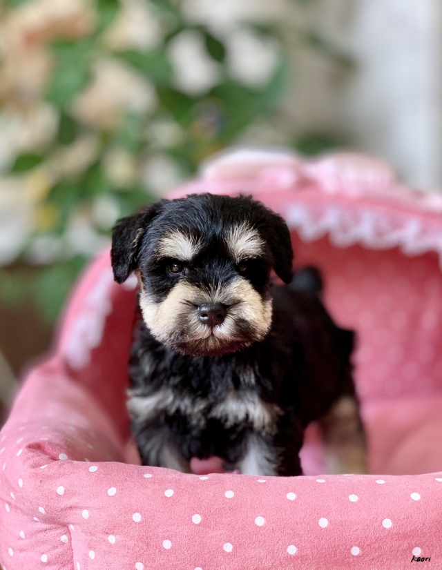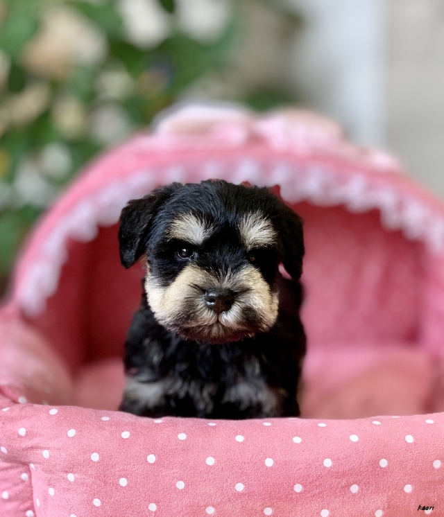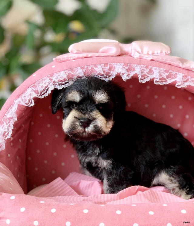 シュナウザーを主力にされているブリーダーさんだと認識しており、ボスちゃんはどうかなあと正直不安でしたがとても可愛く健康的なボスちゃんをいただきました。 掲載されていた写真より実物は想像以上に可愛くて即決し見学させていただいたその日に連れて帰りました。連絡をして、翌日行きますぅって勝手な申し出にも関わらず敏速かつ親切に対応して頂き大満足です。契約に対しても一つ一つ丁寧に説明してくださり、わかりやすかったです。この度は可愛いボスちゃんとのご縁をいただき、本当に有り難うございました。 (大阪府 女性)