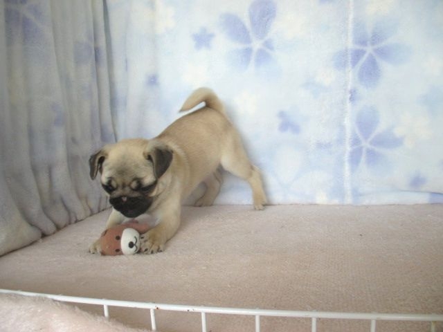 この度、ご縁がありましてパグちゃんを譲って頂きました。 空輸での移動の為、元気に届くかどうか心配しましたが、 手際よく家族として迎えることができました。 この仔をみてると角田ブリーダーによって愛情ゆたかに3ヶ月 育てられてきたことがよくわかります。 我々とともに1日でも長く一緒に居られるように、困った時や患った時にはこれからも、相談させていただこうと思っております。 本当に可愛い仔をありがとうございました。 (神奈川県 男性)