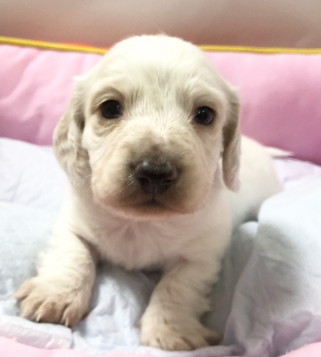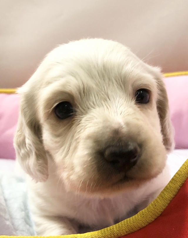 ミニチュア・ダックスフンド(ロング) クリームパイボールド ♂(男の子) 神奈川県【 ブリーダーズ 】