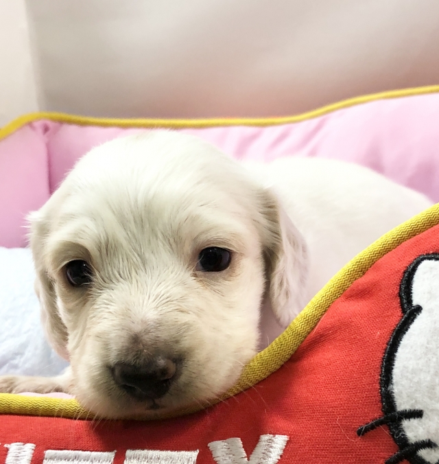 | コメント | PRA【進行性網膜症】 CL、【神経セロイドリポフスチン】 骨異形成症 等の遺伝病を発症する事はありませんので、 ご安心下さい。 健康な子犬をご紹介出来ます様に、両親犬にPRA、CL、骨異形成症の遺伝病検査済です。 詳しくは、ブリーダープロフィール欄に記載しておりますのでご覧に頂けましたら、幸いです。 元気にママのおっぱい飲みスクスク成長中です。 3月16日時点で850g。 人気のクリーム色、優しい綺麗な色合いです。 お顔や身体の柄は、このまま変わらない子も居れば、 多少変わる子も居ます。 生後60日前後でしたらある程度、確定してきますが、絶対ではなく、お引き渡し後に多少変わる子も居ります。 柄を重視なさる方は、ある程度、柄の予想がつくまで、様子を見られる事をお勧めす致します。 お引き渡し前に、初回ワクチン、検便、簡易健康診断をしてお渡しとなります。【獣医師の診断書付きです】 初回ワクチン代【検便代、簡易健康診断代含む】は別途1万必要です。 今後、パパ犬、ママ犬、兄弟犬達、人間と沢山触れ合い、一番大切な社会化期を過ごして参ります。管理も行き届く環境で生活致します。 写真は随時更新致します。 パパは人懐こい、優しい素直な子。元気な男の子です。 ママは素直で、人懐っこい甘えんぼう。 |