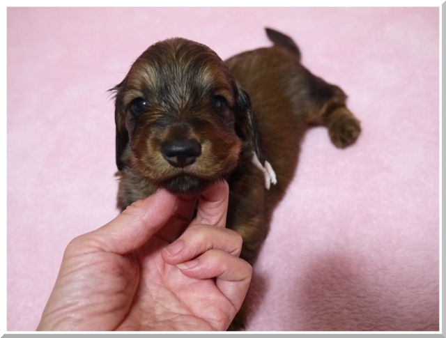 亡くなった愛犬達と同じ、 ワイヤーダックスの子犬を探していましたが、珍しい犬種という事もあり、 なかなか出会えませんでした。 諦めかけた頃、こちらのサイトで可愛い子犬を見つけ、思いきってメールをさせて頂きました。 遠藤ブリーダー様の迅速丁寧な対応で、 お陰様で無事に子犬を迎える事が出来ました。 本当にありがとうございました。 ブリーダーズ様にも感謝致します。 (北海道 女性)