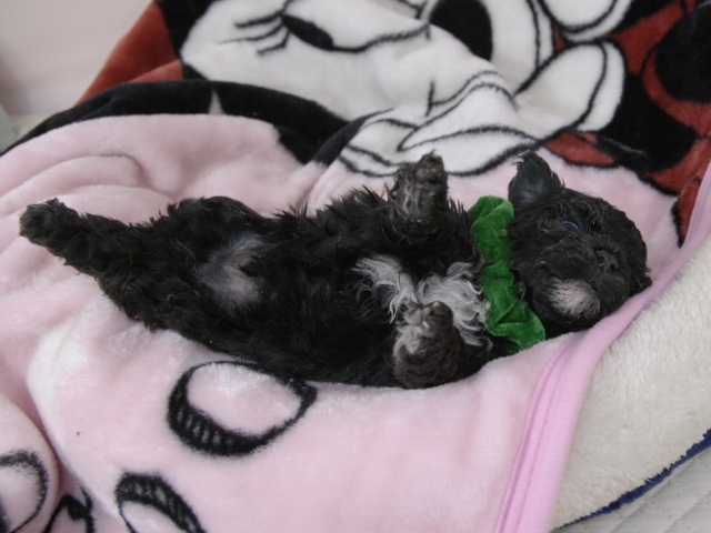 この度はとっても元気な子をありがとうございました。 見学の際は駅まで迎えにきていただき、説明もとても丁寧で安心しました。 空輸で送っていただき、ありがとうございました。 迎えてから一週間が経ち、家にも慣れて、へそ天で寝ています。 トイレトレーニングも、来た時から8割できていて、今ではほとんど失敗しなくなりました。 可愛く元気で、毎日元気に飛び跳ねています。(奈良県 女性)
