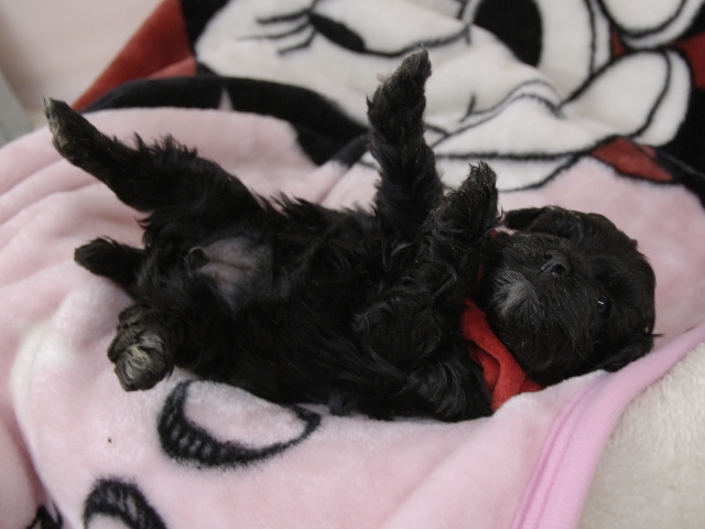 この度はとっても元気な子をありがとうございました。 見学の際は駅まで迎えにきていただき、説明もとても丁寧で安心しました。 空輸で送っていただき、ありがとうございました。 迎えてから一週間が経ち、家にも慣れて、へそ天で寝ています。 トイレトレーニングも、来た時から8割できていて、今ではほとんど失敗しなくなりました。 可愛く元気で、毎日元気に飛び跳ねています。(奈良県 女性)