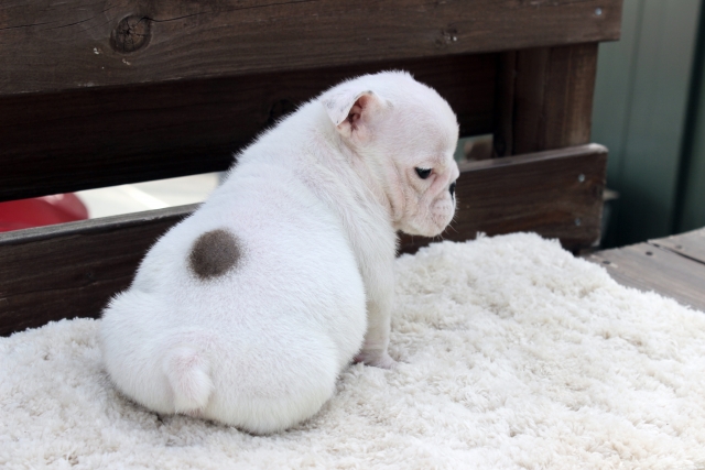 | コメント | 温厚な両親犬から誕生しました! とても可愛らしいお顔の子です。 離乳食トレーニングも終わり、ぷくぷくに育っています。 ガッシリタイプになると思います。 一見ホワイトですが、背中のど真ん中に日の丸柄。 特徴的な柄なので遠くからでも自分のワンコとわかるカモ? 大人しい子です。 |