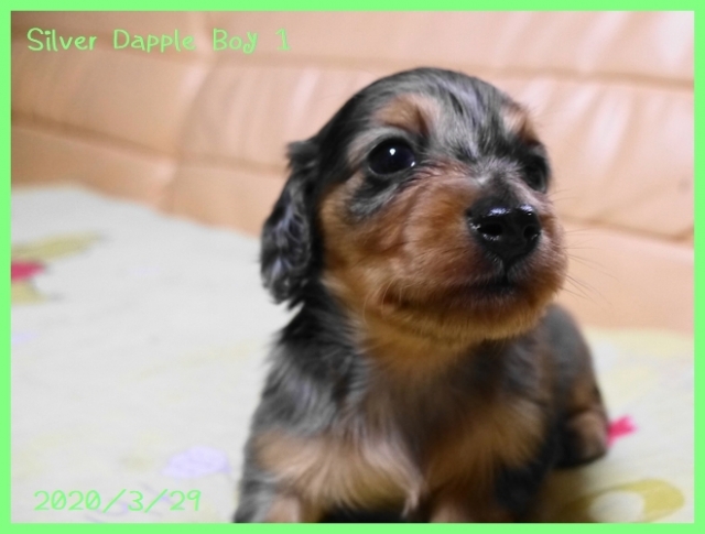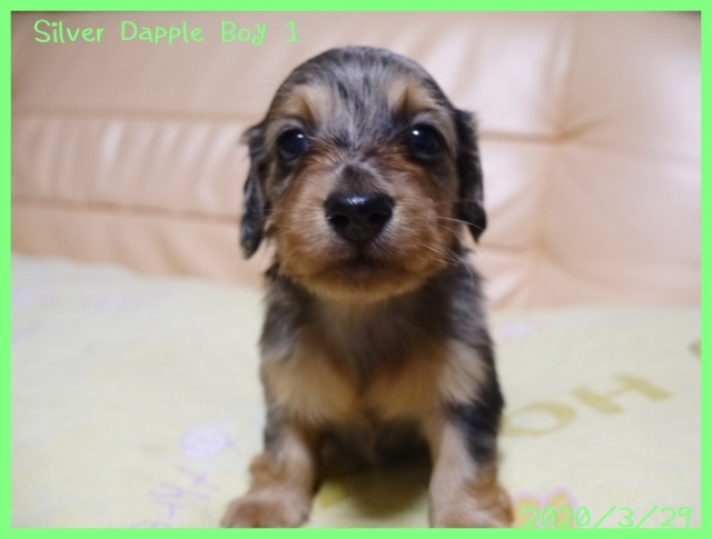 | コメント | パパはJKCチャンピオンの茶美太【ちゃみた】君(シルバーダップル) ママはJKCチャンピオンのくろみちゃん(ブラック&タン) 両親共にJKCチャンピオン同士から生まれた素晴らしい血統の子犬ちゃんです。 現時点での欠点などはありません。 順調に離乳食も食べて、健康で健全な子犬ちゃんです。 全身にとても細かい柄の入った綺麗なシルバーダップルです。 黒地にシルバーの模様のダップルが多いですが、この子はシルバーの地色に黒い斑が入っていますので全体的シルバーっぽいです。 3種混合ワクチンと6種混合ワクチン、健康診断を実施後にお引き渡しさせていただきます。 |