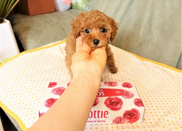 | コメント | 鼻が短くコロコロドアーフ体型の小さな子(タイニーサイズ予想、成犬での楽々片手で抱っこ) 小さな子でも食欲旺盛、欠陥無く兼個体だからこそ、小ぶり成犬時に2.5k前後予想(これ位は有った方が抱っこ他扱い易く健康長生きです。経験上)が安心理想。 綺麗なアプリコットカラー毛巻も強く毛量もだんだん増してこれからもっと可愛さアップで楽しみ 子犬らしく天真爛漫、人懐こく芯は穏やか性格。 無駄吠えもありません。 欠陥無く健康な子なので、長いお留守番も低血糖を起こす心配も無く安心。 当ブリーダーショップは、当初から法的には生後49日で販売可能ですが、当ブリーダーショップは兄弟やみんなと十分に触れ合ってからの生後2カ月でお迎えいただいています。 社会性が身に付き他を思いやり自己中では無くなります。 多頭飼いを希望の皆様が最も気にされている大切に育まれて来た先住わんちゃんとも仲良くできます。 リビングで誕生し刺激がいっぱい賢く覚えが早い。 お迎え後直ぐにご家庭に馴染みます。 日々のドッグランとマッサージでプードルの犬種的膝の弱さを強化。 歯磨きして歯周病菌に犯されない丈夫な身体をと歯磨き遊び、歯のケアの大切さもご指導しています。 20歳越えの元気な長寿を目指してください。 育ちの違いで、飼ってみて違いが分かる賢く大変育てやすい、当方リビング育ちです。 パパ:レッド2.3k ママ:レッド2.2k <別途料金> 別途料金 空輸代¥25000 混合ワクチン代(1回済¥6000 2回済¥12000) 内税となっています。 ※ カード決済可能(決済料当方負担)・・遠隔にお住まいの方でも可能です。お気軽にお尋ねください。 ママに長く付いて母乳から免疫を貰っているので当方子犬は初年度2回接種で最終・・ワクチンは本来子犬の身体には良くないものなので、効能は母乳から貰い回数が少ない方が良いとされる。1回目も他より遅い) カード決済(ご来店できない方でも可能、決済料当方負担)ご来店が難しい方でも可能ですのでお気軽にご相談ください。 ★長生きの秘訣 お迎え時に直接来店では無く空港等遠隔の場合でも飼主様が楽ちん子犬が自分で歯磨き習慣が身につく方法をご指導しどの子もできるようになっております(お迎え後の確認済) ※飼い始め応援!・・躾、健康面のケア、スターターグッズ等いろいろなご質問にお答えしてます。 安心して直ぐに飼い始められるようお気軽にお尋ねください。 ★健康状態・・良好 混合ワクチン済・健康診断良好・駆虫済 (健康診断書とワクチン証明書有添付) ★環境・・・自然豊かな田舎で私共夫婦とママとリビングで生活し良い刺激がいっぱい、表情のある穏やかで社会性のある性格が培われています。お迎え後も直ぐにご家庭に馴染み人懐こく扱い易い子達です。 躾の基本は、飼い主様が完全上位に立ち子犬が従順であることだと言われています。従順さはママのお手本通り培われています。 親から早く離されたり、兄弟仲間と遊んだ経験の少ない子は突然理由なくキレたり、獰猛だったりと昨今、問題視されています。 明るく元気ですが、聞き分けが良く吠えずお隣等が近いマンションにも適した穏やかさです。 ★トイレ躾 ゲージの中でのトイレトレーニングは躾済でお渡し。お迎え後の違った環境では変化することもありますので、その際にはお気軽にご相談ください。 *アニコム動物保険の代理店 (動物保険会社では、倒産した時に国が保証する2つの保険会社の1つ)手厚い補償で好評の日本最大の動物保険会社です。(ブリーダーショップとしては、当店が唯一認定店)・・・アニコム1ヵ月100%動物保険プレゼント。 ※ 動物取扱士・家庭犬トレーナー・トリマー・小動物看護士・ペット繁殖指導員の居るブリーダーショップ ★アフターフォロー丁寧:繁殖直売のブリーダーショップで子犬は愛おしい存在です。ブリーダー(繁殖者)や中間業者やペットショップに渡すことをせず一般ご家庭の飼い主様にのみお迎えいただいております。 <プレゼント> ★ アニコム損保動物保険すまいるべぃびぃ(当ブリーダーショップ代理店からのプレゼントで手続きは当方で全て行いますので、飼い主様による手続きは一切ありません) ★ わんこ母子手帳(全国ペット協会会員) ★慣れたフード1袋(お迎え当初は皆様戸惑われますので、与え方の詳しいプリントと1食づつの小袋も用意) ※ 飼い主様スターター準備:ゲージ(来店の方に仕入れ価格でお譲り・遠隔地でのお迎えの場合 手配のお手伝い)・トイレトレー・フード皿・ベッド・給水器等・サークル <当舎の特徴> ★ 心身共に管理できる少数の繁殖犬両親から子犬を育てています。 ★ 多種カード会社認定店・・・VISA・Master・UC・JCB・AMERICANEXPRESS・Nicos・Diners・DC・UFJ 決済手数料の5%は当店がお支払いサービスとなっています。 ★ 多頭飼いや2頭目をお迎えの方にも適した社会性を身につけた子犬をお譲りしています。 ★ 引越や旅行・夏・冬等の計画でお迎え延期でも無料でお預かり。 ペットホテル