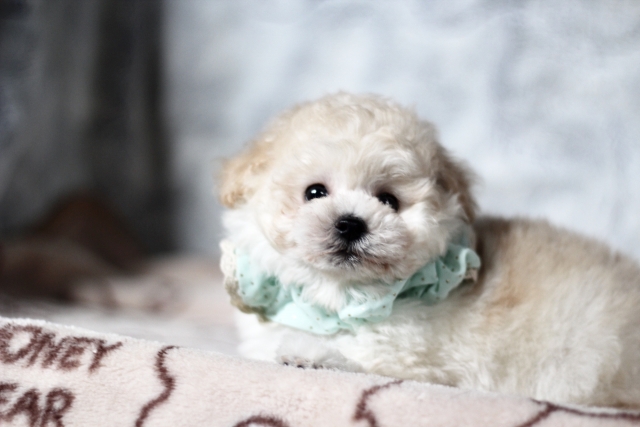 | コメント | パッチリおめめ♡ お鼻も色素が濃くて 可愛いお顔をしています♪ 成犬時予想サイズはタイニーくらいかと思います。 当店は離乳時期までしっかりと母犬と一緒に過ごさせてます。 離乳後は、他の子犬たちと過ごして触れ合わせて、 社会性も身に付けさせています。 わんこも人も大好き♡ 可愛さは顔だけでなく、性格もラブリーな子達に育てています♡ お引き渡しはワクチン接種後の生後60日前後以降となります。 ご見学お問い合わせお待ちしております(^-^) 撮影日:3月27日 |