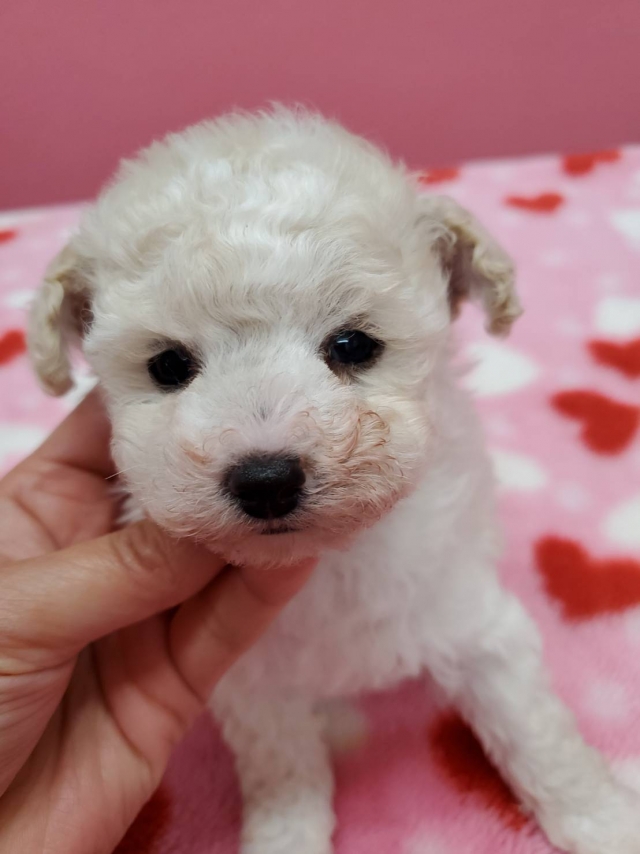 | コメント | 父犬 AMチャンピオン孫 可愛く頭の良い小さい男の子です。 母犬 父AM.BISS.JKCチャンピオン JKCチャンピオンは数回のチャレンジでウイナーズ&リザーブウイナーズで完成しました。 プードル展覧会でBISS(このドッグショーで1番)に選ばれました。 2018東京の単犬合同展でアワードオブメリット その他BOB多数 アメリカのドッグショーにも出陳して3日間でオーバースペシャル含めて チャンピオン完成しました。 可愛く綺麗なお顔です。性格もとても良い子です。 先に誕生した父の兄妹の子も日本にて優秀な成績でチャンピオン完成し プードル部会展にてBISSいただきました。 INTチャンピオンに成るためのCACIB保有しています。その後アメリカに行き 優秀な成績でアメリカグランドチャンピオン完成しました。 2016世界三大ドッグショーでもあるウエストミンスタードッグショーでトイプードルでブリード取得しました。 その子の同じ兄弟の子もすべてウイナーズドッグとオーバースペシャル にてチャンピオン完成しています。 母犬 母JKCチャンピオン 優秀な成績でチャンピオン完成しました すべてウイナーズビッチとオーバースペシャルにて チャンピオン完成しました。 お顔のとても可愛い、優しい子です。 両親ともに優良血統です 素晴らしい素敵な両親から誕生した小さな可愛い女の子です。 チビッコながら毛量多く、バランスの良いスクエアな体型をしています。 お顔、体型、歩く姿とても綺麗で可愛い子です 色んなカットが似合うと思います サイズ予想 極小〜小さいサイズ。ティーカップサイズ小さめ〜ティーカップサイズ 小さいサイズですが、毛量多く、バランスの良いスクエアな素晴らしい体型をしています。 歩く姿も可愛いです。 お顔も可愛いです。 お顔、体型、歩く姿とても可愛い子です 色んなカットが似合うと思います 小さなからだでですが良く食べ良く遊んでいます! ホワイトで愛らしく可愛い~ワンランク上のワンちゃんを望まれる方に むいていると思います。 性格は目が合うと、いつも尻尾ブンブンで愛らしくとても可愛いです。 とても人懐っこく犬も人も大好きです。 同世代の子達とも仲良く遊ぶ事が出来ます。 良くお話しをじっと聞いて覚えも良く頭の良い子です。 甘えん坊で愛らしくとても可愛いです。 とても性格の良い子なので初めての方にも向いていると思います。 とても小さい子です。 普通の大きさの子や大きめの子が何ともない所でも、小さいので生活環境に注意が必要です。 階段など高さのあるところなどにも注意してあげてください。 ○両親PRAクリアですので発症いたしません。 健康診断済みです。健康状況良好です。 お引渡し前にも健康診断を受けて健康な状態でのお引渡しとなります。 ☆見学受け付けております(事前のご予約お願い致します) ※当犬舎の犬は繁殖用にはお渡しいたしておりません為お問い合わせご遠慮ください。(特に、この子は小さい為出産は命にかかわります。) 病気予防、乱繁殖避ける為、 去勢手術を譲渡条件にさせて頂いています。 〇ご家庭の家族の一員として生涯幸せな日々を送ってほしいと願っています。 どうぞ宜しくお願いいたします。 |
