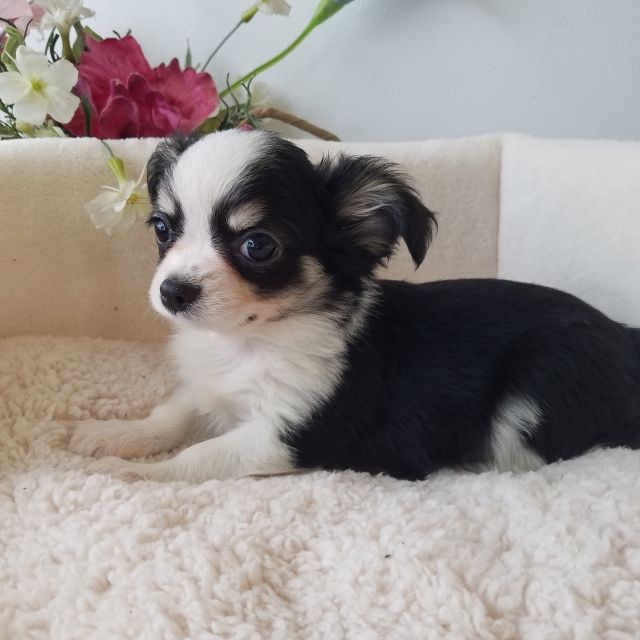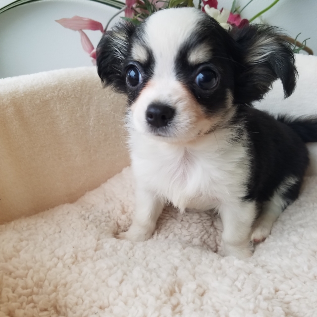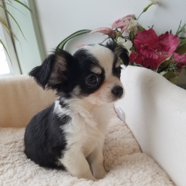 チワワ(ロング) ブラック&ホワイト ♀(女の子) 岩手県【 ブリーダーズ 】