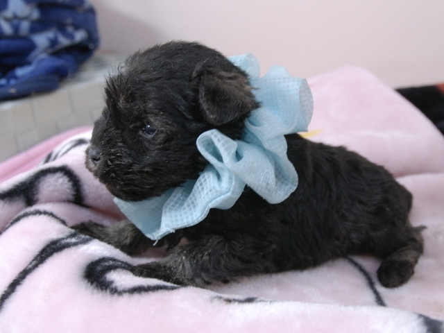 | コメント | お父さんは木村さん所有ダスティン君(JKCチャンピオン)、お母さんはルーシーちゃんから生まれたダンディーな男の子です。(水色リボン君) 健康状態は、問題有りません。 すくすく育っています。 特典として、平日割引(2万円)見学並びに契約をして頂いた方。 土日祝日割引(1万円)見学並びに契約をして頂いた方、ジャンケンで勝ったら値引きします。 |