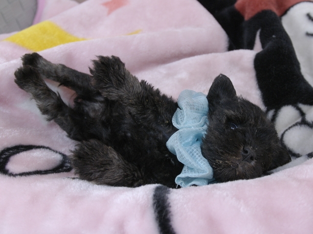 この度はとっても元気な子をありがとうございました。 見学の際は駅まで迎えにきていただき、説明もとても丁寧で安心しました。 空輸で送っていただき、ありがとうございました。 迎えてから一週間が経ち、家にも慣れて、へそ天で寝ています。 トイレトレーニングも、来た時から8割できていて、今ではほとんど失敗しなくなりました。 可愛く元気で、毎日元気に飛び跳ねています。(奈良県 女性)