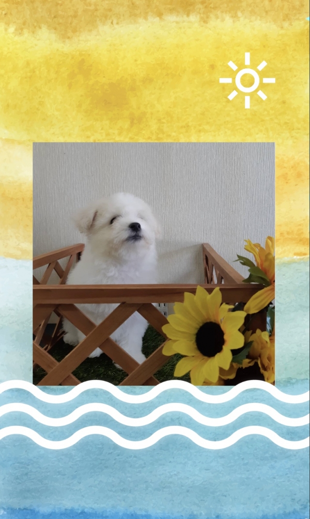 ビションフリーゼが欲しくても 地元には、なかなかいないと思って 県外にお迎えに行こうとまで思ってましたが、たまたま、見たブリーダーズに県内に居るのを見つけて、 早速、見学の申し込みをしましたが、直ぐには行けない旨を伝えると、 動画を送ってくださり、動画で即決しました! その後会いに行っても可愛いの一言で、直ぐには連れて帰りたかったほどです(笑) お迎えも待ち遠しく、揃えるものも色々アドバイス頂き、万全にお迎えできました。 お迎えした日も夜は泣くかもと言われましたが、全く泣くことなく、 すっかり、欠かせない存在です。 出会いに感謝しています。 ありがとうございました! 良いブリーダーさんに出会えたことも感謝です。 (福岡県 女性)