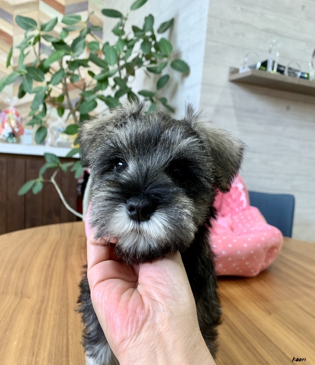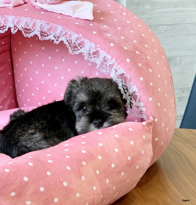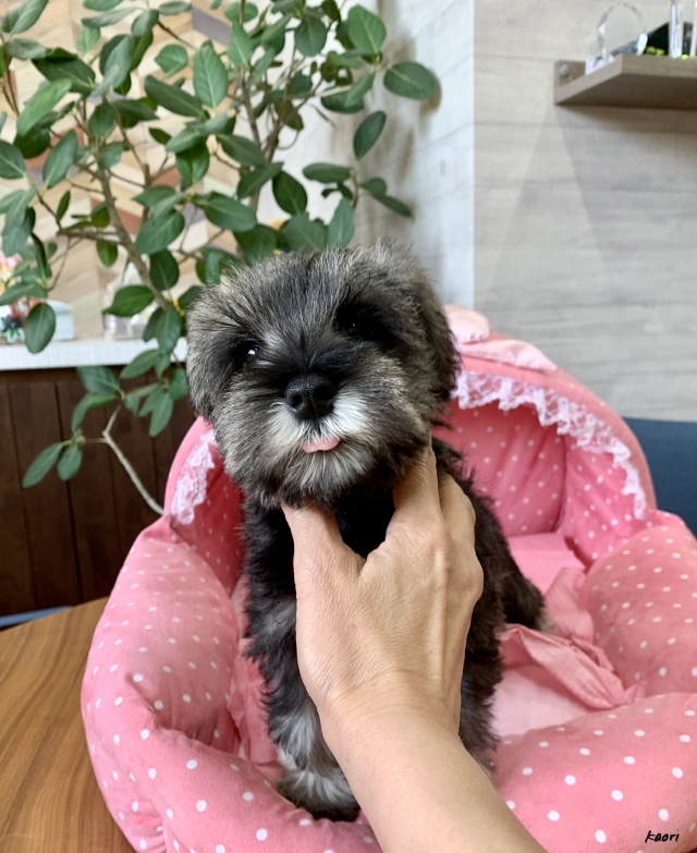 シュナウザーを主力にされているブリーダーさんだと認識しており、ボスちゃんはどうかなあと正直不安でしたがとても可愛く健康的なボスちゃんをいただきました。 掲載されていた写真より実物は想像以上に可愛くて即決し見学させていただいたその日に連れて帰りました。連絡をして、翌日行きますぅって勝手な申し出にも関わらず敏速かつ親切に対応して頂き大満足です。契約に対しても一つ一つ丁寧に説明してくださり、わかりやすかったです。この度は可愛いボスちゃんとのご縁をいただき、本当に有り難うございました。 (大阪府 女性)