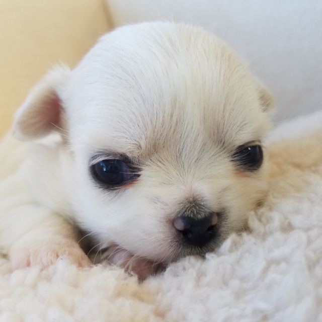 元々チワワを飼っている私の、両親も犬を飼いたいという事で、前川ブリーダーを見つけ、たまたま近くにいらっしゃるということもありすぐ見に行きましたが、チワワちゃん達はみんな可愛く、元々気になっていた子にすぐ決まりました。前川ブリーダーも、優しく色々教えてくださり、ワンちゃんたちを大切にされてる感じがしました。私も早くにもっとお会いできていたらと思いました!仔犬もすごくお利口さんです。またよろしくお願いします!!(岩手県 男性)