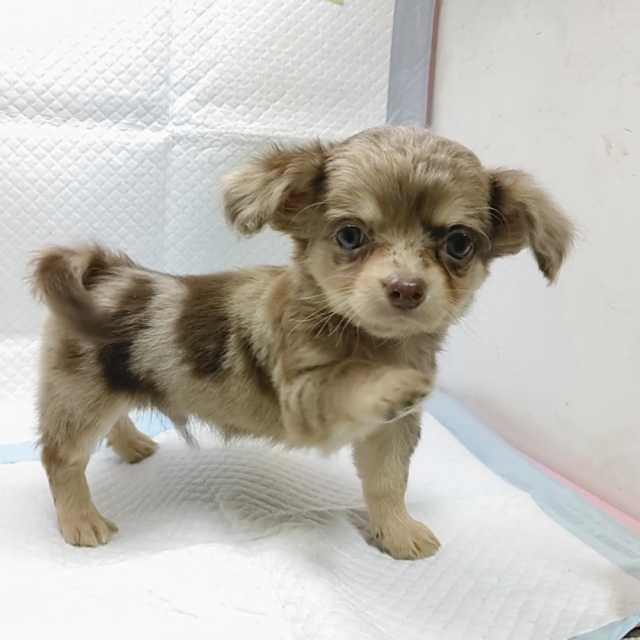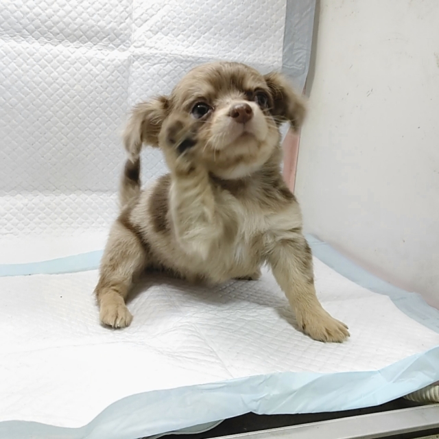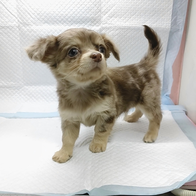 | コメント | パパ…チワワ ママ…ダックス とても可愛い子です(^-^) 物怖じしない愛想のいい子です。 お顔はチワワに似てますが、胴は少し長いめです。 毛色はマール柄で珍しいですよ。 ※噛み合わせがオーバーになりますが、生活していく上での支障はありません。 ※必ず見学が必要になります。 見学の際は大阪のショップに来て頂くことになります。前もってご連絡下さい。 素敵なご縁があります様に。 沢山のお問い合わせお待ちしております。 |