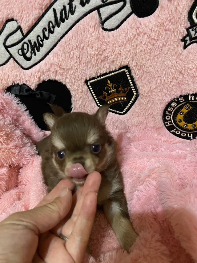この度は、一生のご縁をいただき、ありがとうございました。 また、田所様も、問い合わせの段階から親切丁寧にご対応いただき感謝しております。 チワワちゃんのママとも会わせていただき、大変嬉しかったです。 お忙しい中、こちらの時間にも合わせてもらい感謝しております。 この先続くチワワちゃんとの生活を楽しみながら大切に育てていきたいと思います。 この度は、本当にありがとうございました。 (宮城県 女性)