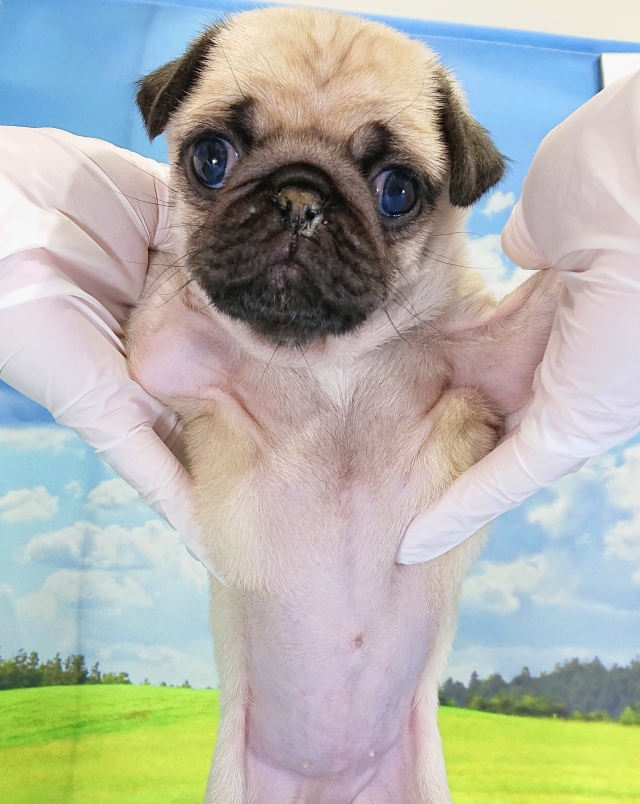 | コメント | この度は数ある掲載犬の中からご覧いただきまして ありがとうございます。 パパ 小鉄 フォーン 8.5kg ママ おかゆ フォーン 7.5kg との間に一粒種として 3月14日に元気に産まれました。 まだ小さいので性格的な特徴はハッキリしておりませんが、おとなしめの子だと思います。 毎日離乳食をモリモリ食べながらスクスクと成長中です。 大泉門、臍ヘルニア、鼠径ヘルニア等の異常はありません。 身体的な所で 漏斗胸ではありませんが、胸が若干平な感があります。 今現在生活に何ら支障はありません 今後の生活にも問題は無いと思います。 まだ生後1か月ということもありますし成長に伴い骨格も発達していくと思われます。 獣医さんによる健康診断済みですので 見学事にご確認下さい。 今後も写真やコメント等、随時掲載していきます。 (注)双方の新型コロナウィルス感染予防の為、手先の消毒、マスク着用をお願いの上、屋外での見学を予定しておりますので その旨ご了承下さい。 平常時ですと「お気軽に見学にお越し下さい」と記載しておりますが 何分この様な時世ですので ご家族の皆様と良くご検討の上、ご購入意欲が高まりましたらお問い合わせお待ち致しております。 ご購入の参考になります様に気になる事など有りましたら何なりとご質問下さい。 ※両親共に遺伝子病であるDM(変性性脊髄症)発症のリスクはありませんので この子も発症のリスクはありません。 遺伝子病検査は実施致しておりますので検査機関の証明書をお付け致します。 |