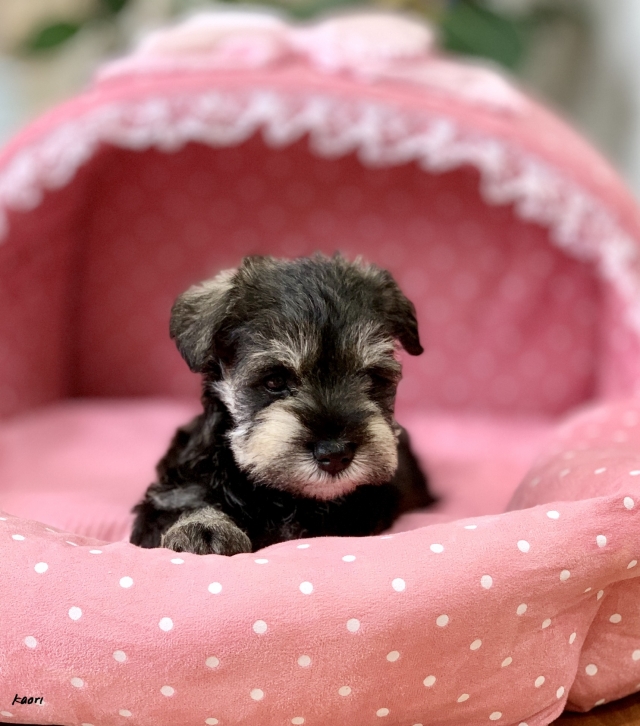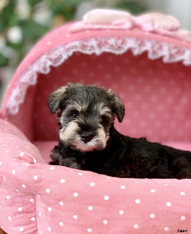 シュナウザーを主力にされているブリーダーさんだと認識しており、ボスちゃんはどうかなあと正直不安でしたがとても可愛く健康的なボスちゃんをいただきました。 掲載されていた写真より実物は想像以上に可愛くて即決し見学させていただいたその日に連れて帰りました。連絡をして、翌日行きますぅって勝手な申し出にも関わらず敏速かつ親切に対応して頂き大満足です。契約に対しても一つ一つ丁寧に説明してくださり、わかりやすかったです。この度は可愛いボスちゃんとのご縁をいただき、本当に有り難うございました。 (大阪府 女性)