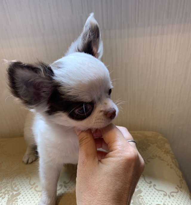 チワワ(ロング) ホワイト&チョコレート ♀(女の子) 兵庫県【 ブリーダーズ 】