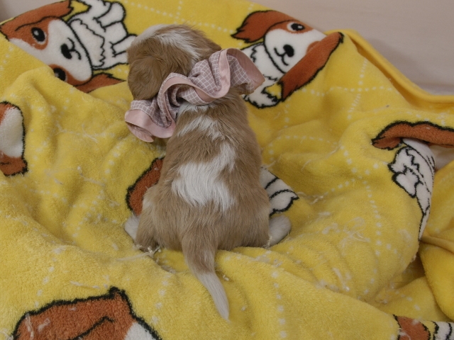 | コメント | お父さんはJKCチャンピオンの家光君、お母さんはチャンピオン直子カーラちゃんから生まれたキュートな女の子です。(桃リボンちゃん) 健康状態は、問題有りません。 すくすく育っています 特典として、平日割引(2万円)見学並びに契約をして頂いた方。 土日祝日割引(1万円)見学並びに契約をして頂いた方、ジャンケンで勝ったら値引きします。 |