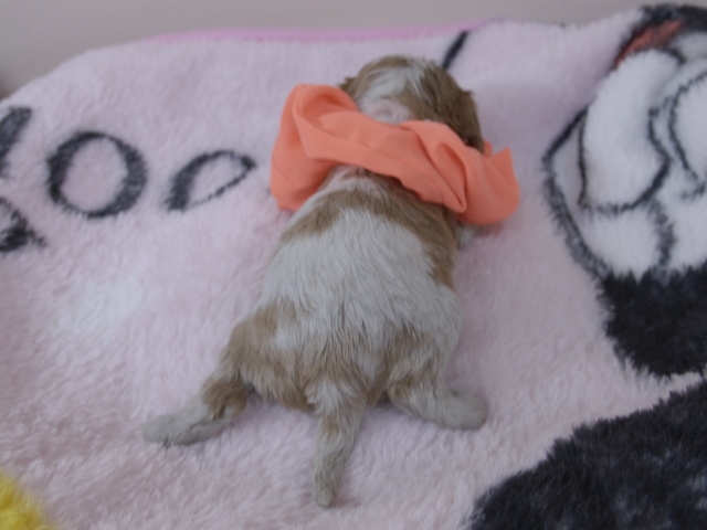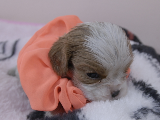 この度はとっても元気な子をありがとうございました。 見学の際は駅まで迎えにきていただき、説明もとても丁寧で安心しました。 空輸で送っていただき、ありがとうございました。 迎えてから一週間が経ち、家にも慣れて、へそ天で寝ています。 トイレトレーニングも、来た時から8割できていて、今ではほとんど失敗しなくなりました。 可愛く元気で、毎日元気に飛び跳ねています。(奈良県 女性)