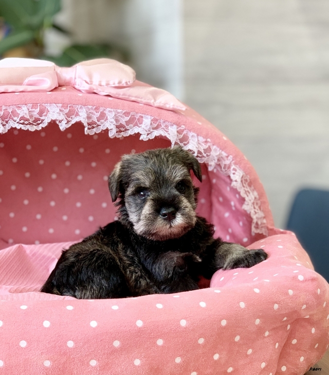 シュナウザーを主力にされているブリーダーさんだと認識しており、ボスちゃんはどうかなあと正直不安でしたがとても可愛く健康的なボスちゃんをいただきました。 掲載されていた写真より実物は想像以上に可愛くて即決し見学させていただいたその日に連れて帰りました。連絡をして、翌日行きますぅって勝手な申し出にも関わらず敏速かつ親切に対応して頂き大満足です。契約に対しても一つ一つ丁寧に説明してくださり、わかりやすかったです。この度は可愛いボスちゃんとのご縁をいただき、本当に有り難うございました。 (大阪府 女性)