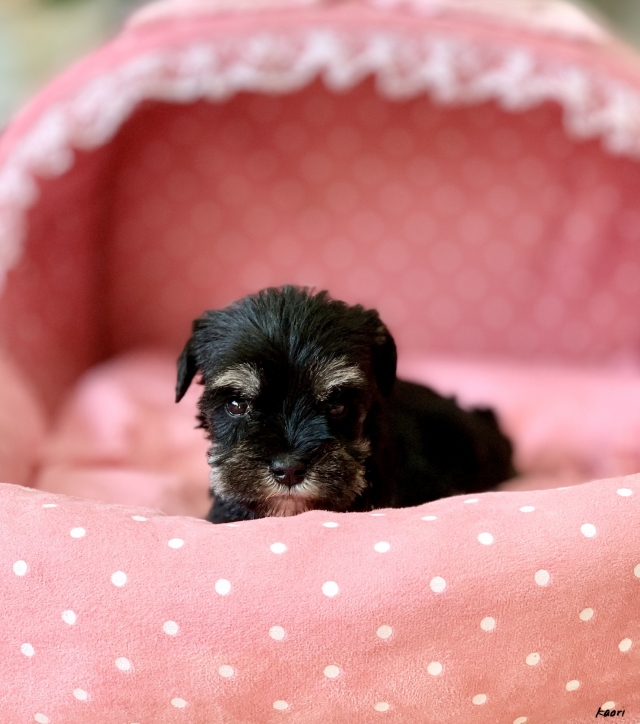 シュナウザーを主力にされているブリーダーさんだと認識しており、ボスちゃんはどうかなあと正直不安でしたがとても可愛く健康的なボスちゃんをいただきました。 掲載されていた写真より実物は想像以上に可愛くて即決し見学させていただいたその日に連れて帰りました。連絡をして、翌日行きますぅって勝手な申し出にも関わらず敏速かつ親切に対応して頂き大満足です。契約に対しても一つ一つ丁寧に説明してくださり、わかりやすかったです。この度は可愛いボスちゃんとのご縁をいただき、本当に有り難うございました。 (大阪府 女性)