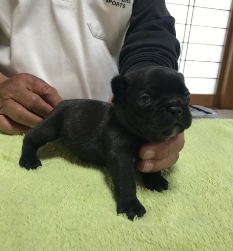 掲載されていた仔犬が可愛らしく見学を希望、西村さんよりすぐご連絡頂きました。見学に行った時には仔犬だけじゃぁ無く親犬や他の仔犬など沢山のフレンチにふれ合い、とても気さくな西村さんとお話ししていて幸せなひと時でした。帰りは近くの高速の入り口まで案内して頂きました。我が家に迎え入れて数日経ちますが元気で愛くるしくってたまらないです。(大阪府 女性)