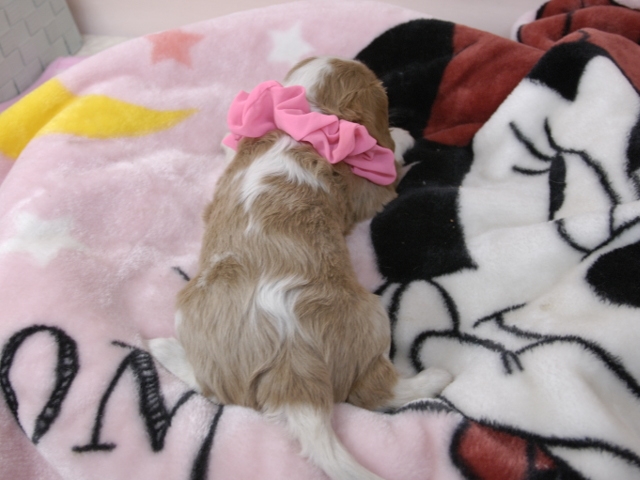 この度はとっても元気な子をありがとうございました。 見学の際は駅まで迎えにきていただき、説明もとても丁寧で安心しました。 空輸で送っていただき、ありがとうございました。 迎えてから一週間が経ち、家にも慣れて、へそ天で寝ています。 トイレトレーニングも、来た時から8割できていて、今ではほとんど失敗しなくなりました。 可愛く元気で、毎日元気に飛び跳ねています。(奈良県 女性)
