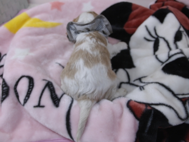 この度はとっても元気な子をありがとうございました。 見学の際は駅まで迎えにきていただき、説明もとても丁寧で安心しました。 空輸で送っていただき、ありがとうございました。 迎えてから一週間が経ち、家にも慣れて、へそ天で寝ています。 トイレトレーニングも、来た時から8割できていて、今ではほとんど失敗しなくなりました。 可愛く元気で、毎日元気に飛び跳ねています。(奈良県 女性)