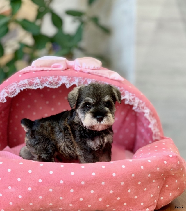 シュナウザーを主力にされているブリーダーさんだと認識しており、ボスちゃんはどうかなあと正直不安でしたがとても可愛く健康的なボスちゃんをいただきました。 掲載されていた写真より実物は想像以上に可愛くて即決し見学させていただいたその日に連れて帰りました。連絡をして、翌日行きますぅって勝手な申し出にも関わらず敏速かつ親切に対応して頂き大満足です。契約に対しても一つ一つ丁寧に説明してくださり、わかりやすかったです。この度は可愛いボスちゃんとのご縁をいただき、本当に有り難うございました。 (大阪府 女性)